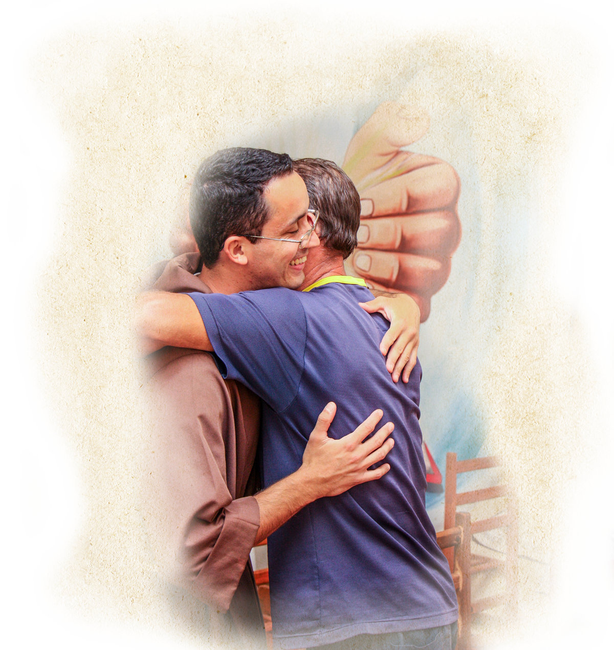 Repetindo o abraço de São Francisco de Assis, levando paz e esperança aos excluídos da sociedade atual.